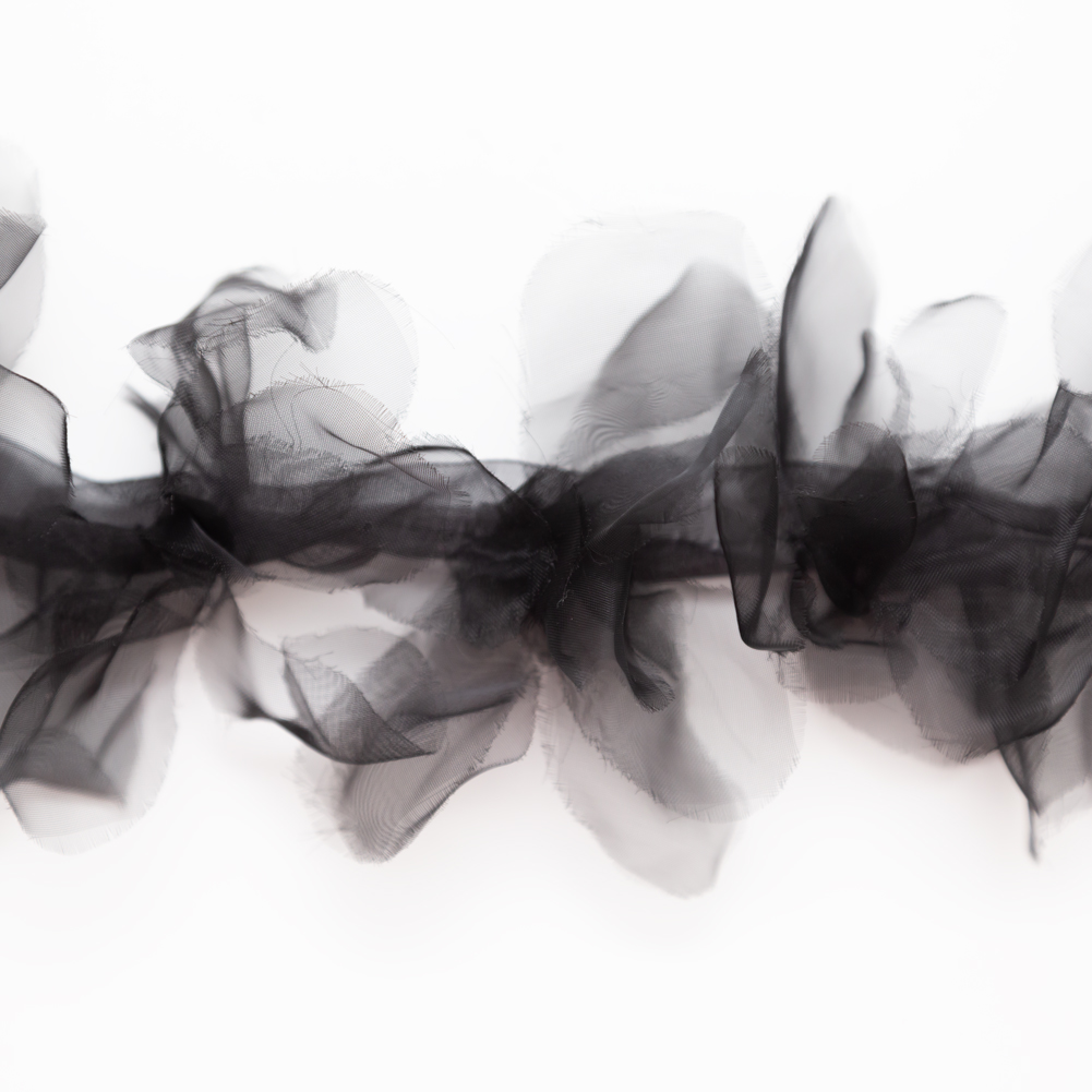 Always trust that the classics will keep you in check. As a classic, bound-to-be, our Italian 3D Organdy Floral Trim in Black is certainly no exception. Featuring a crisp yet smooth surface, courtesy of its tightly twisted yarns and uniform weave, Organdy Trim is a fine medium for casual garments, formal wear, and everything in between. Animated in many directions, the translucent petals flare out in about a 4” height span. Design with the 3D in mind; add this sculptural element to blouses, dresses, and gowns - even costumes, for an unforgettable look.