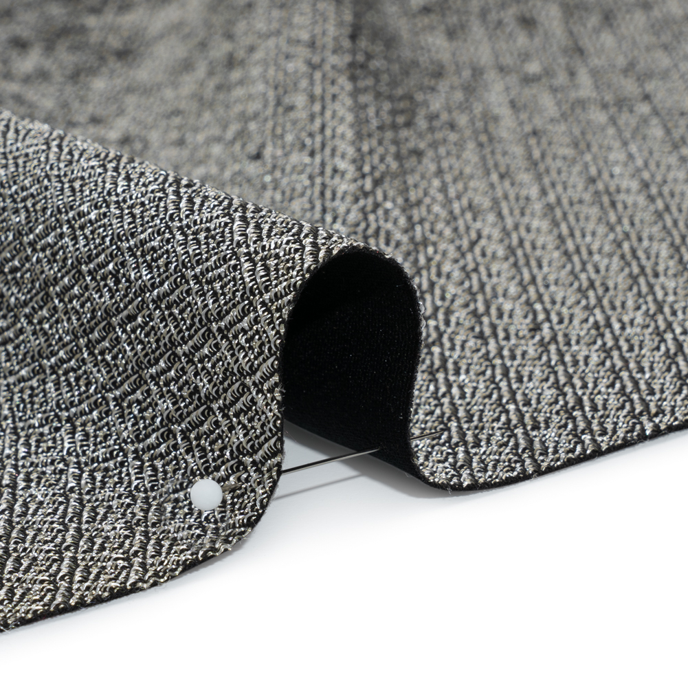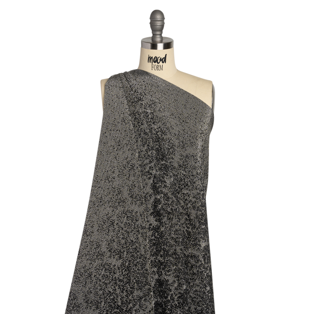 The stunning things you could make with this Italian Black and White Abstract Stretch Jacquard are no abstract concept! One side of this woven features a textural diamond-studded pattern mottled in silver-white and black, while the other is of a smoother feel, mostly black with white speckles.