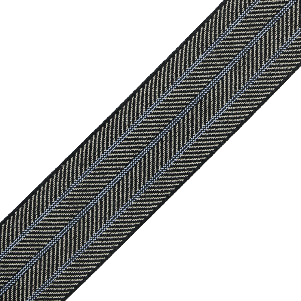 Italian Black, Beige and Blue Herringbone Elastic - 1.5"