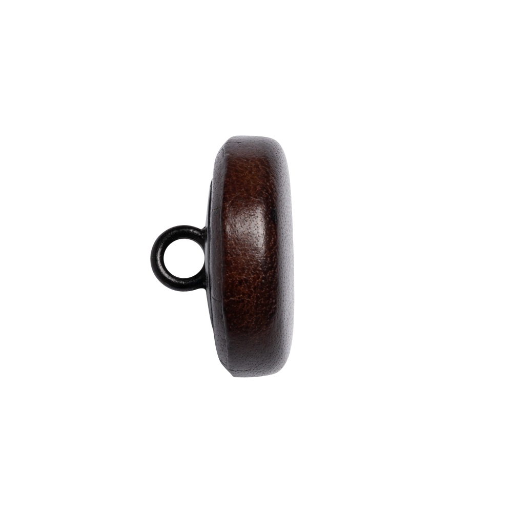 Mood has a wide selection of buttons to take your project to the next level!Here we have a collection of Italian Brown Flat Top Leather Shank Back Buttons featuring a sleek, flat face covered in a shiny dark brown leather.