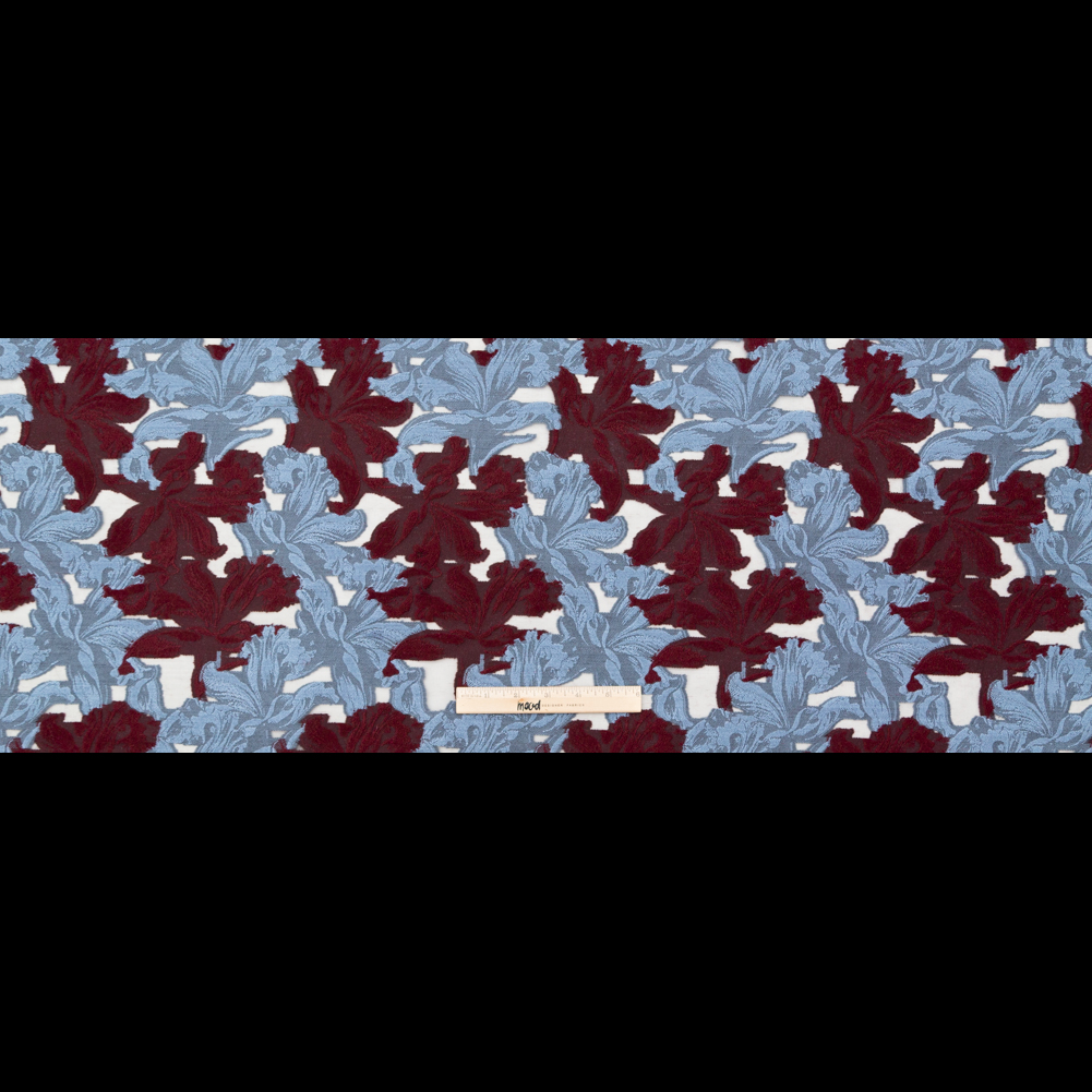 Be the first to review “Italian Burgundy and Light Blue Floral Embroidered Wool Burnout”