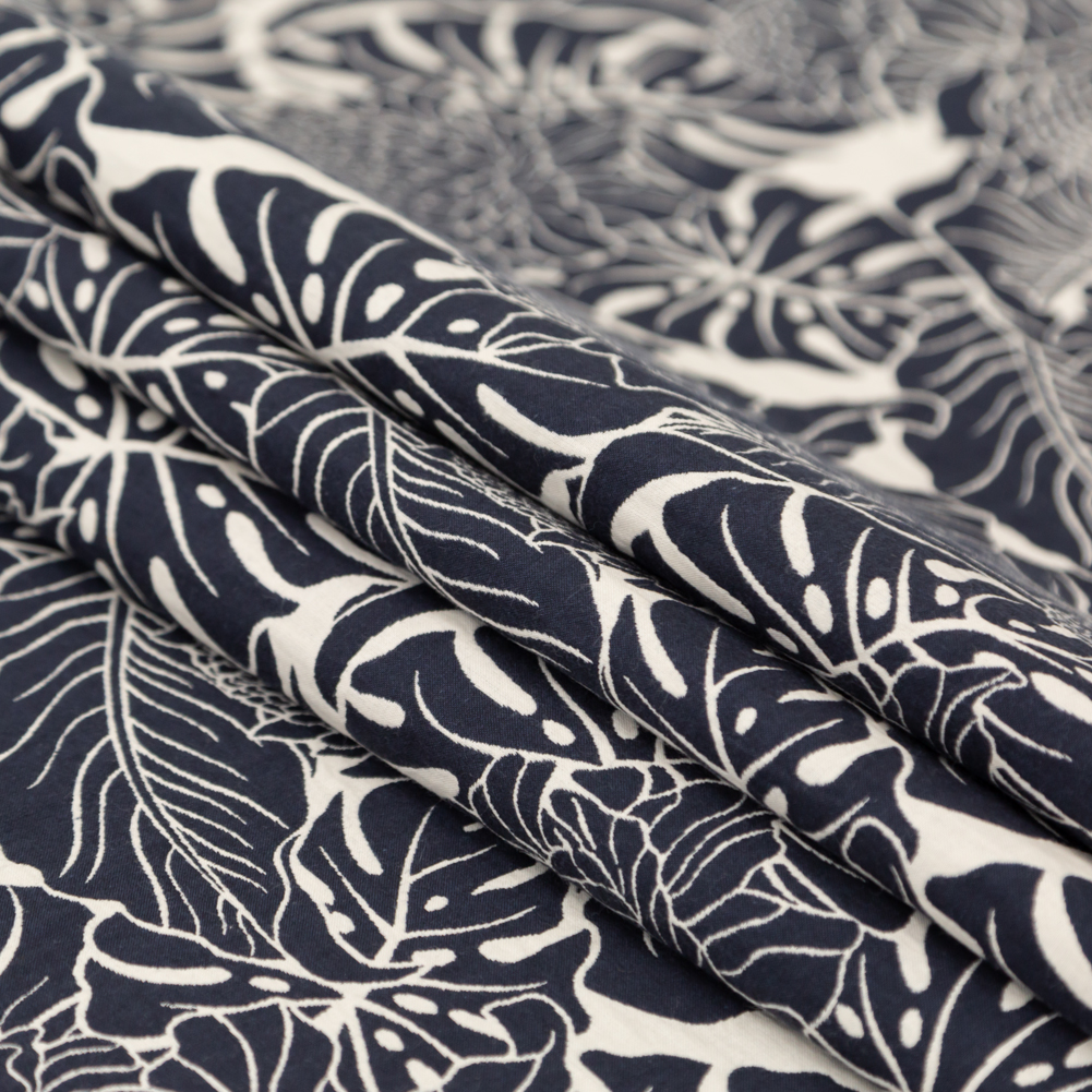 Italian Carbon Blue and Ecru Floral Cotton Jacquard
