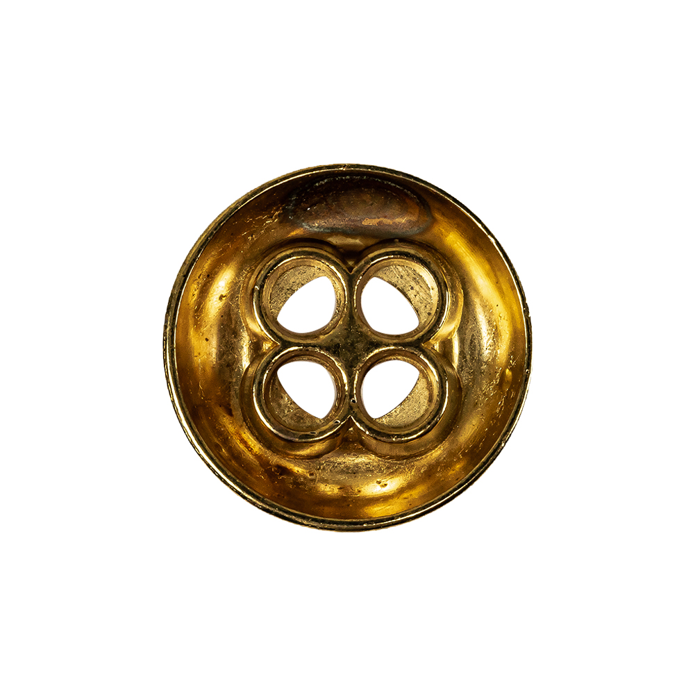 Mood's variety of metal buttons are great for innumerable applications from leather fashions and projects to coats, suits, and trousers; to denim clothes and totes, to handbags, even pillow accents and more!Here, we have a grouping of Italian 4-Hole Deepwell Metal Buttons featuring four central holes bordered by dramatic convex rims, as well as a flat backing, all in a super-shiny gold color.We offer this specific button in size 36L/23mm with a gauge of 4.69mm, as well as in two other colorways. The gold variety is also available in sizes 28L/18mm and 44L/28mm.Browse our expansive metal button category to find what you are looking for; considering blazers, jeans, fun accessories, and beyond?—you name it, we've probably got it!
