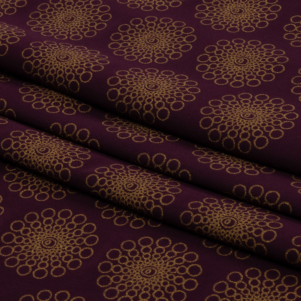 Italian Grape and Metallic Dark Gold Floral Circles Stretch Nylon Jersey