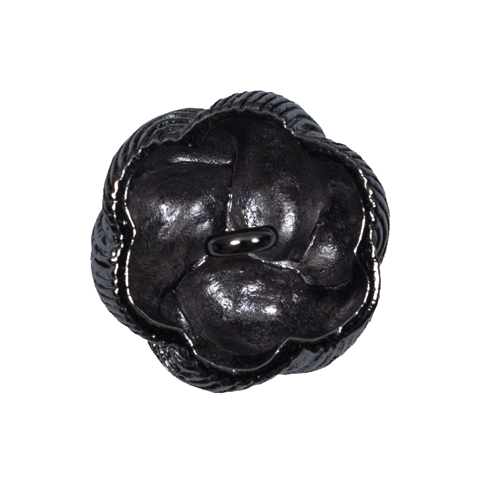 Mood carries a variety of metal buttons in all shapes, sizes, and colors! Here we have a gunmetal button featuring a knotted design with a shank back.