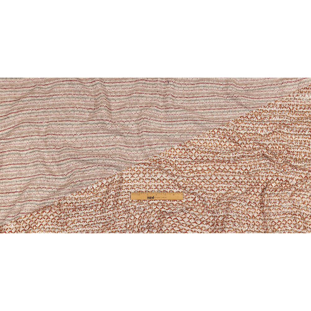 Italian Ivory, Camel and Pink Tactile Cotton and Polyester Sweater Knit