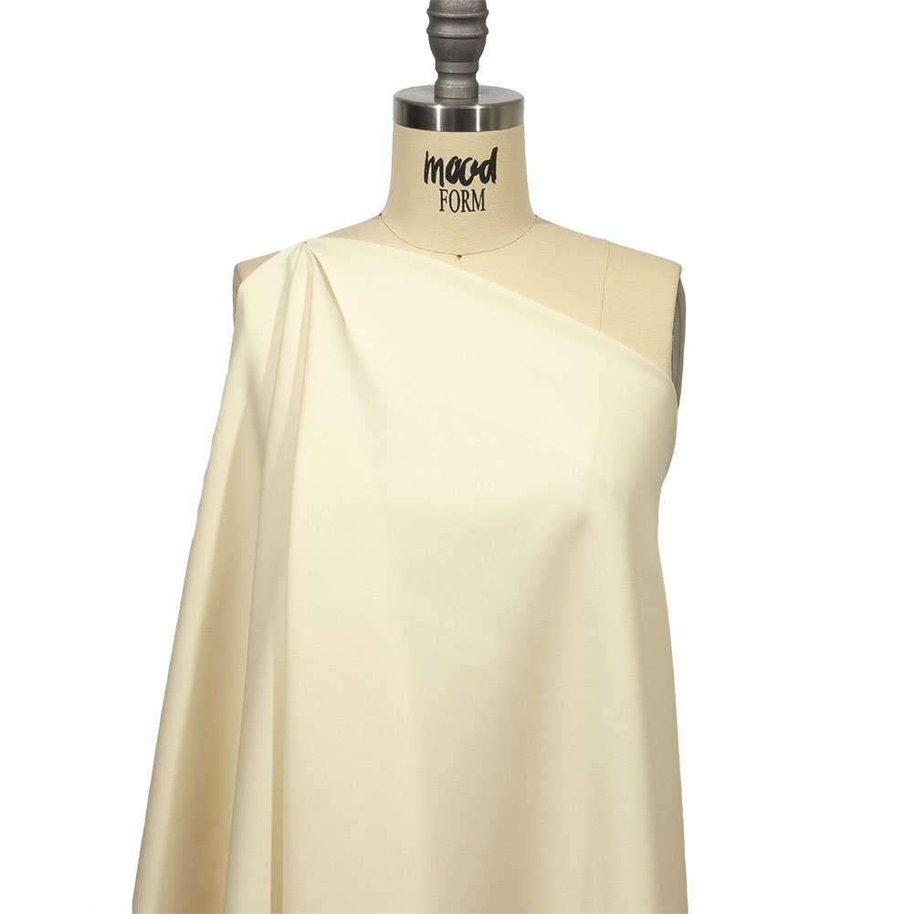 Where there's a twill, there's a way, and this Italian Ivory Double Face Stretch Super 160 Virgin Wool Twill Suiting is definitely the way to go! Sweet creamy ivory shines from both faces of this wool, while Super 150 yarns add a delightfully soft hand. Slightly thicker than your average suiting, yet still featuring a flexible drape, create jackets, trousers, and sheath dresses that make a statement at the office, or fashion more casual skirts, dresses, and more! Opaque, a lining is not necessary, but may be desired to add a polished finish, particularly in more tailored applications.