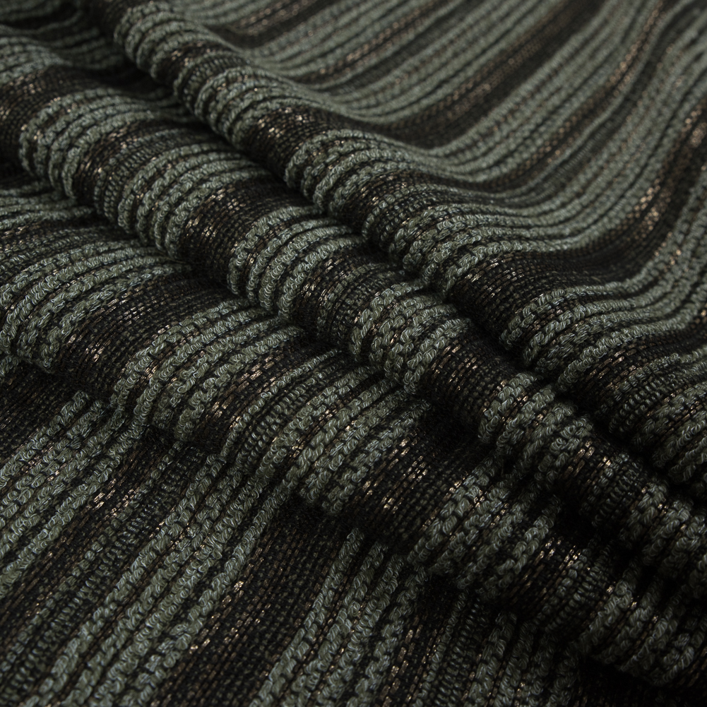 Italian Olive Striped Cotton Blended Tweed
