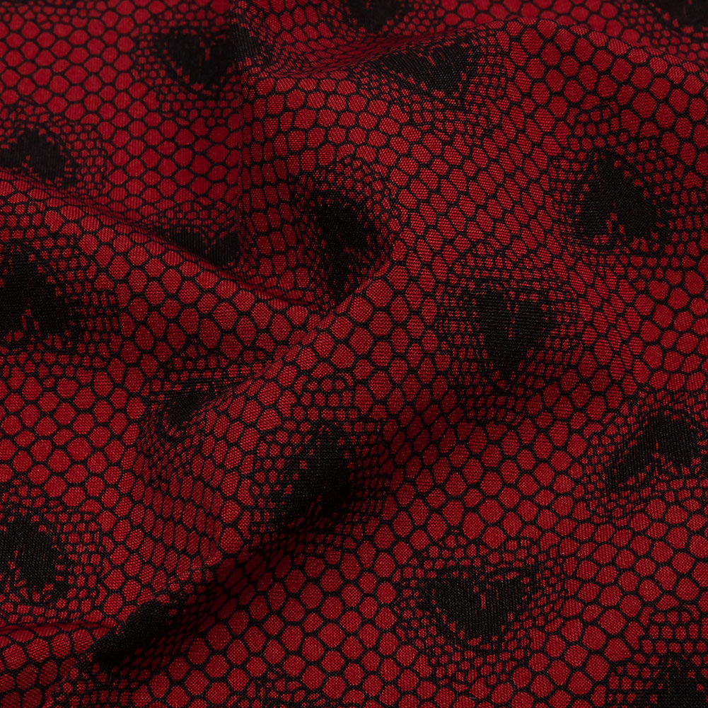 Italian Red and Black Lace Hearts Stretch Nylon Jersey