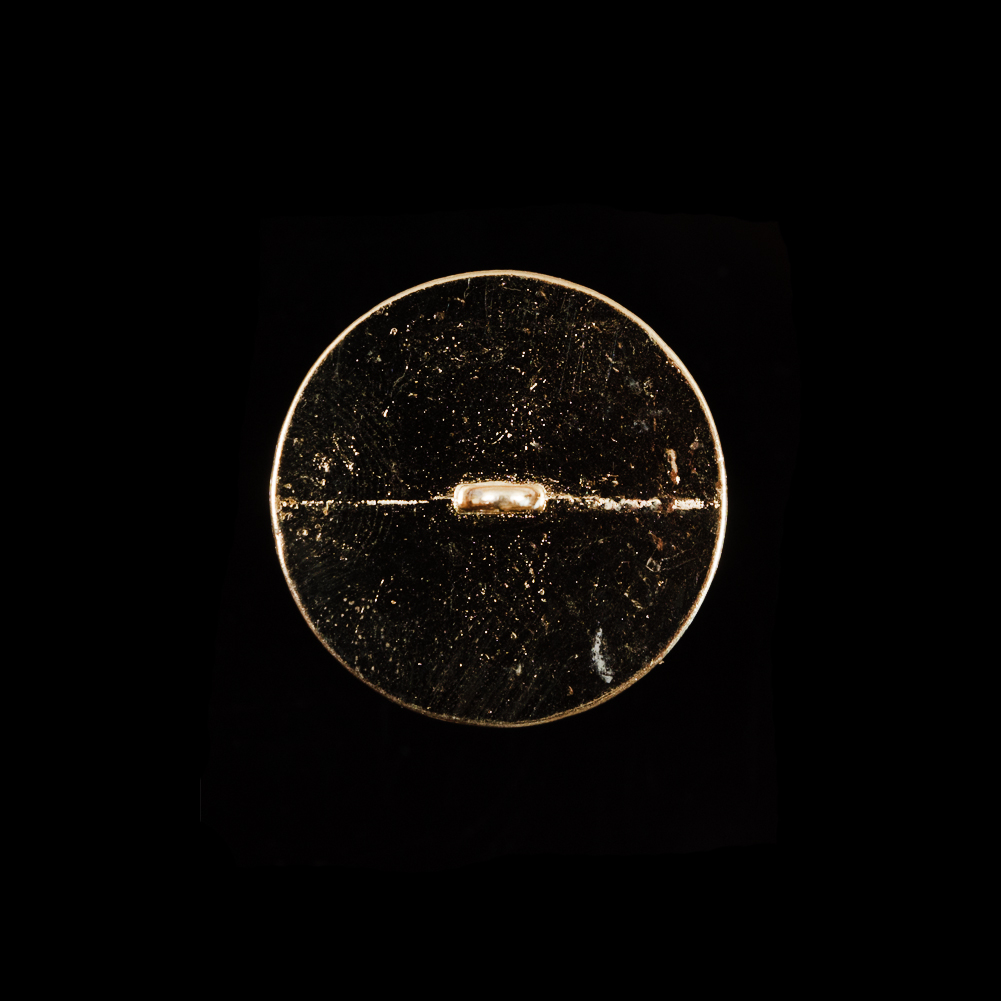 Mood carries a variety of metal buttons in all shapes, sizes, and colors! Metal buttons are great for just about any application; from blouses to trousers, to pillow accents or handbags. Here we have a round button featuring a four centered hole and stitched design in gold within a red enamel face and a shank back. This specific button is carried in sizes 15mm, 20mm, and 27mm. Browse our metal button category and you are guaranteed to find what you're looking for.