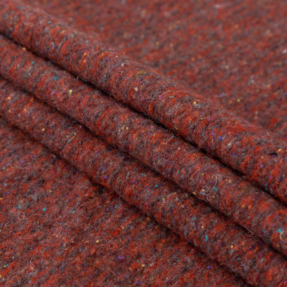 You may not be able to trust everything that you've red on the internet, but this Italian Red and Gray Speckled Fuzzy Wool Knit truly does stand up to the hype! A red and gray backdrop is met with multicolor speckles throughout for dance of color and pazzazz. A soft and fuzzy hand is paired with a lightly structured drape and a 4-way stretch more prominent to the weft than the warp to create a material perfect for those cooler nights during the transitional seasons. Form this fuzzy fabric into sweaters, leg warmers, and infinity scarves sure to be envied by friends and all who see it. We suggest creating a sweater dress using this material and adding whatever personal touches you see fit. Opaque in construction, a lining is not necessary but may be used if additional structure is desired or if the piece calls for one.
