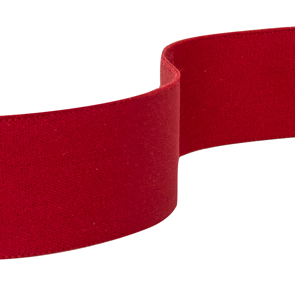 This Italian Red Elastic Trim will band together with your fabric for a fabulous finish! Similar in appearance to a satin ribbon at first glance, this elastic features a slick feel and a sturdy stretch of almost 70% along its length.