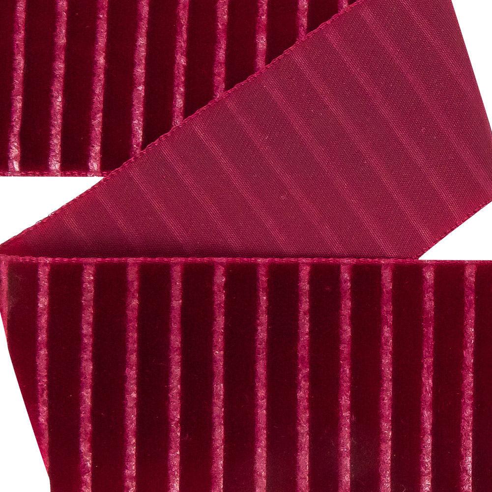 Italian Red Vertical Stripes Velvet Burnout Trim - 1.4375"