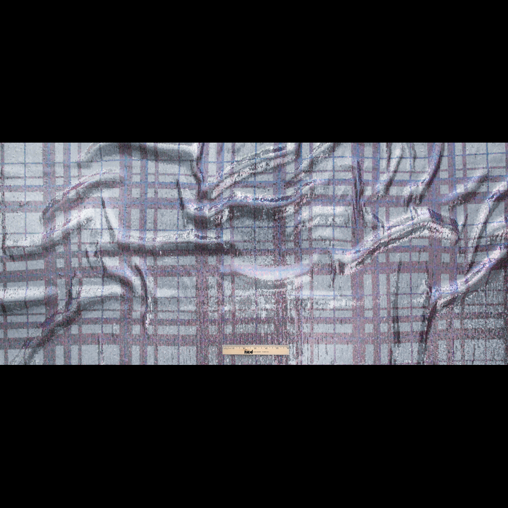 Unleash your girly side knowing our Italian Silver Circle Baby Sequins on Periwinkle, Lavender and White Plaid Mesh embodies that grunge style you crave, too! Shimmying around in this dazzling gem inevitably attracts all the attention—anywhere you go. And, with an effortlessly fluid drape and a facing covered in light-bouncing sequins, the fashion “snobs” will be drooling! Medium in weight and offering about 50% weft-wise stretch, expect to move and groove with ease as you razzle-dazzle the night away. Showing off a carefully strung plaid pattern, design body-hugging silhouettes such as dresses, crop-tops, and skirts that take advantage of the stripes. Incorporating a lining is a MUST—unless one prefers transparent garb!Do note, the sequins begin after about 6” of mesh from one selvage edge and about 4” from the other.