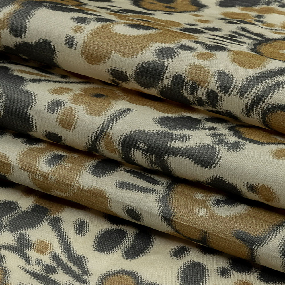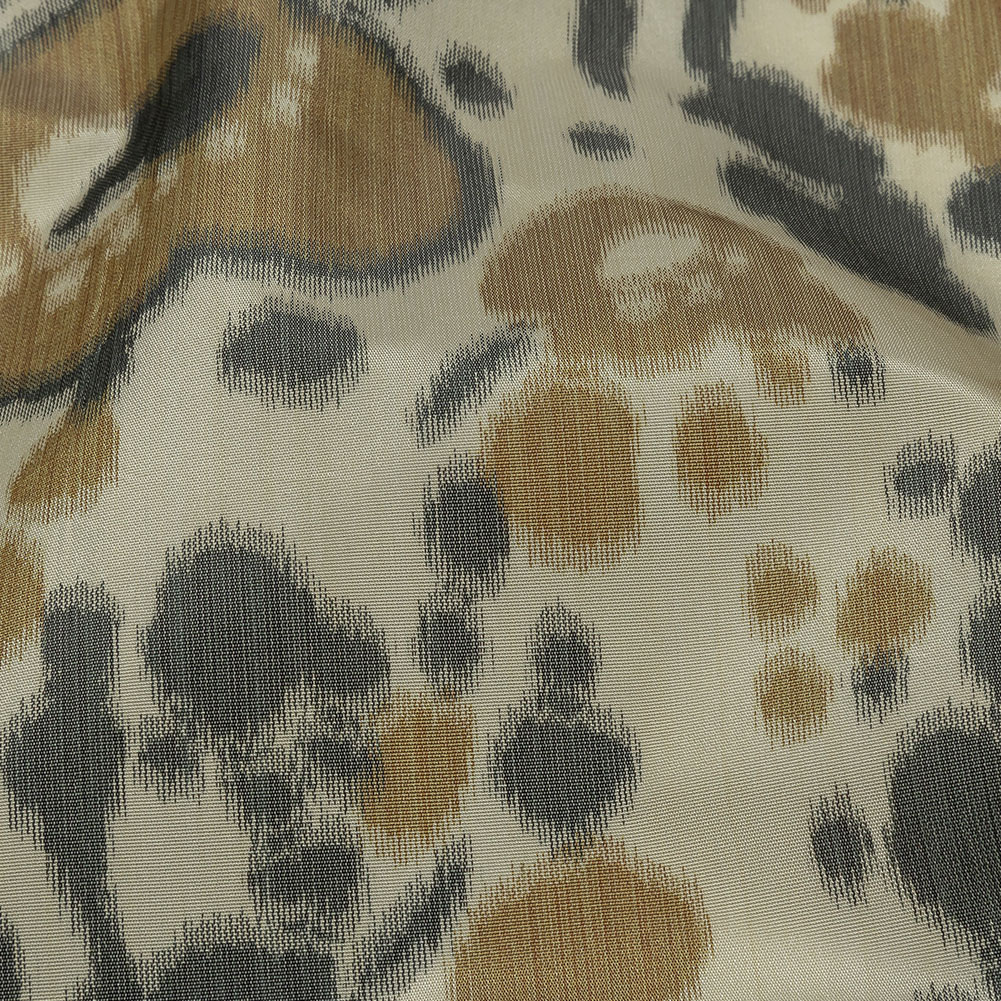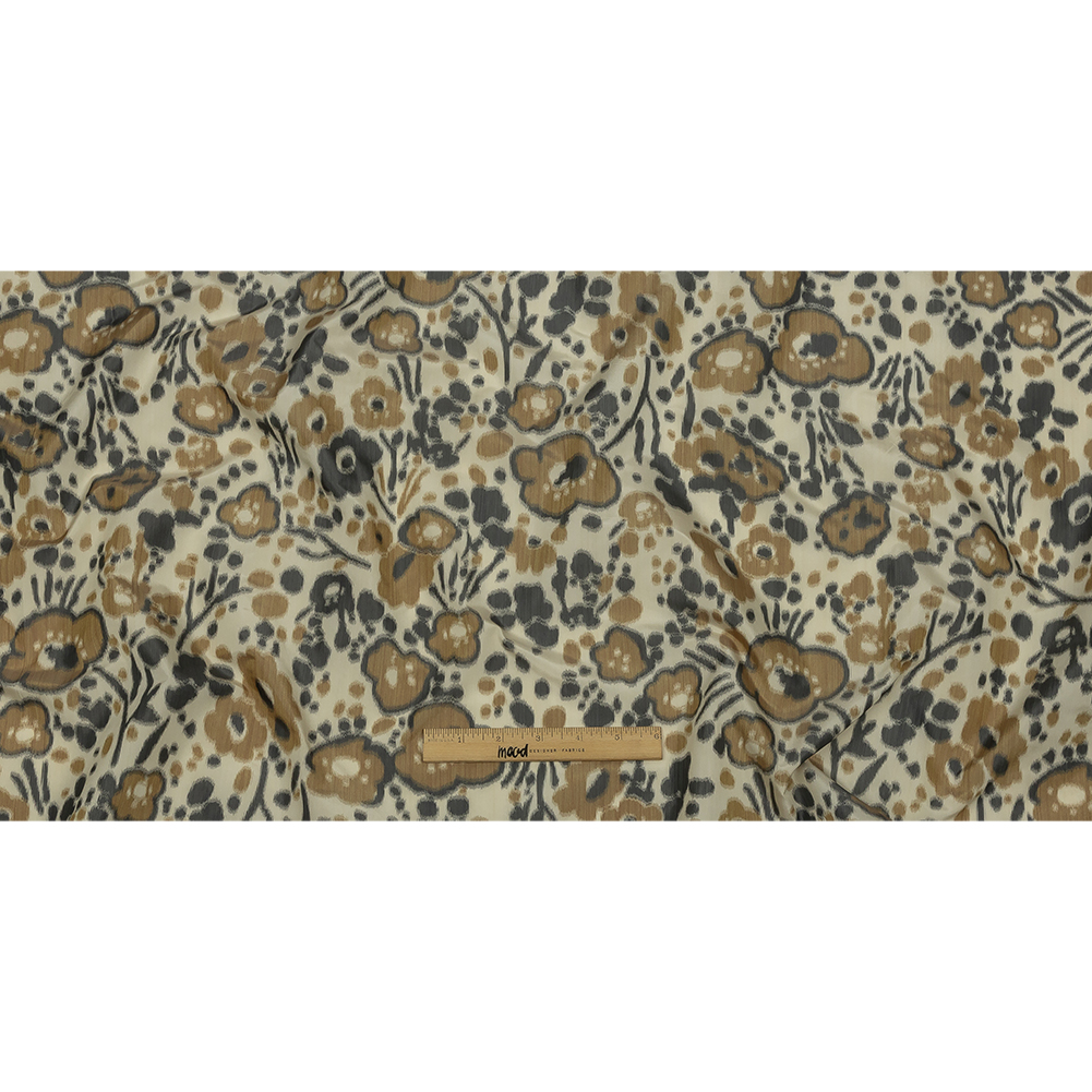 Italian Tan, Beige and Basalt Floral Warp Printed Polyester Faille