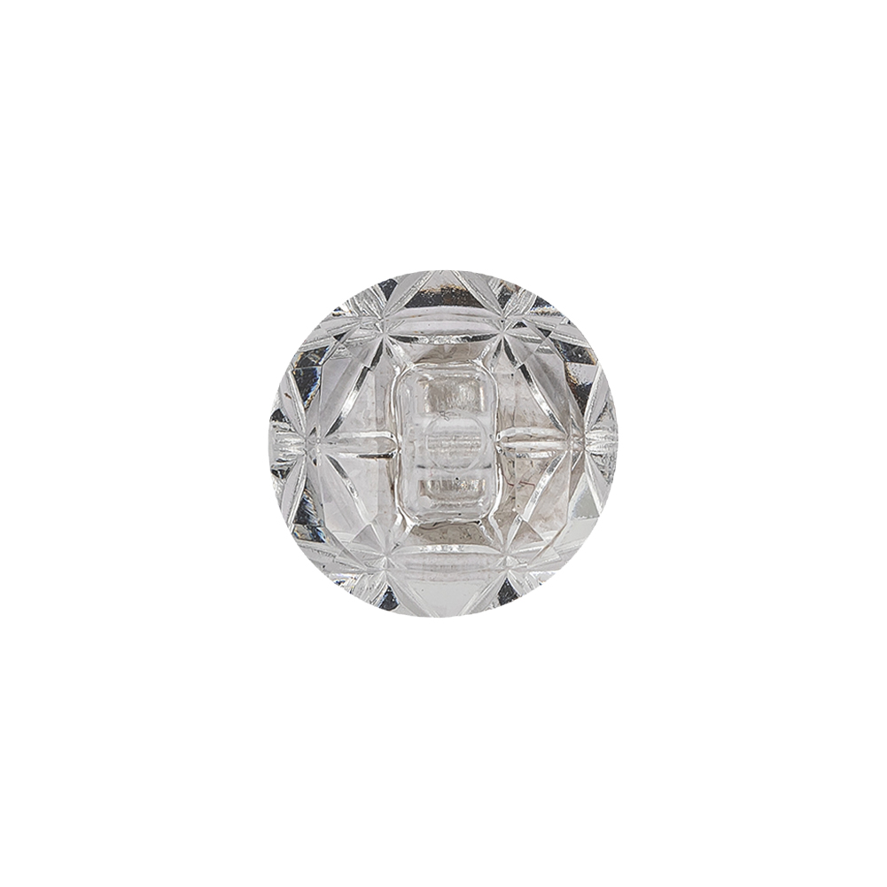 Mood carries a variety of plastic buttons in all shapes, sizes, and colors! Plastic buttons are great for just about any application; from blouses to trousers, to blazers and coats, to pillow accents or handbags.This grouping of Transparent Geometric Shank Back Dome Shaped Plastic Buttons features a domed face marked with a geometric design of triangles arranged to form hexagons, while its transparent nature gives the feel of gleaming rhinestones or glass. The reverse, also domed, is faceted for a surprising amount of sparkle. In size 24L/15mm, this crystalline delight of a button has a gauge of 8.12mm, and also comes in two additional sizes: 44L/28mm and 36L/23mm.Browse our plastic button category and you are guaranteed to find what you're looking for! WARNING: Cancer and Reproductive Harm - www.P65Warnings.ca.gov.