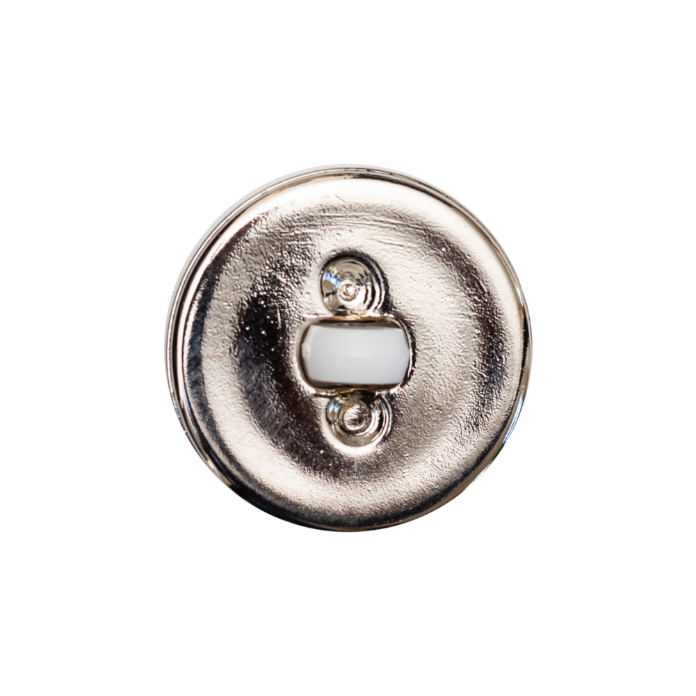Italian White and Silver Round 2-Piece Shank Back Button - 36L/23mm