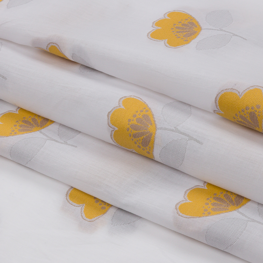 Italian White, Goldenrod and Gray Floral Cotton Jacquard