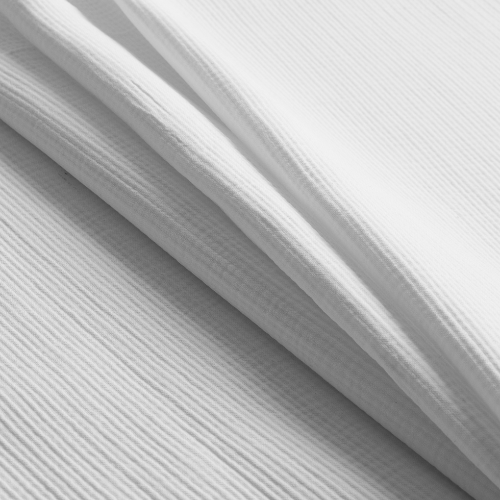 Here is a fabric straight from Italy which is sure to please! It resembles a ribbed knit with the way it's constructed, but its tightly woven with a very intricate pattern. We at Mood give you an Italian White Textured Cotton-Poly Woven which is extremely soft, plush, and has a stiffer drape. Laying at 50" in width and completely opaque, turn this beautiful fabric into that perfect tote bag, or a plush, lightweight jacket. We highly recommend ordering a swatch of this at least.