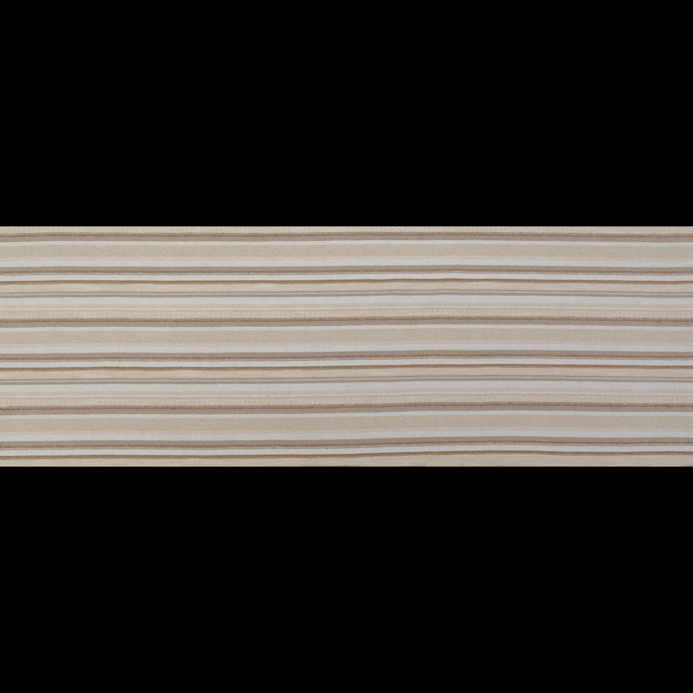Sophisticate your next staple piece with this Ivory and Beige Striped Cotton Dobby! For those who aren't familiar with the term dobby, it refers to a woven fabric produced on the dobby loom, characterized by small geometric patterns and extra texture in the cloth. This particular cotton dobby fabric features a stripe pattern layered with fine details in the weave, but due to this cotton's soft hand and flexible drape, the texture is subtle and rewards a curious eye. Use it to create upbeat day dresses, vintage three-quarter length skirts, and more! Translucent, a lining is suggested for added opacity or comfort.