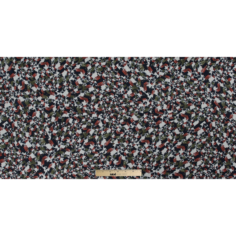 Jason Wu Navy, Burnt Orange and Green Abstract Silk Chiffon
