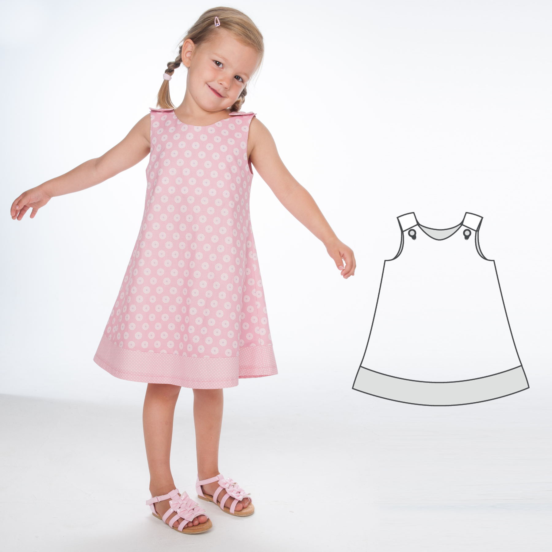 The pattern for a summer girl's dress or apron dress is one of the three girls' dresses on offer ❤ a dream come true ❤ From babyhood to the first 12 years, your favorite dress will accompany you through the most beautiful years of your child ★