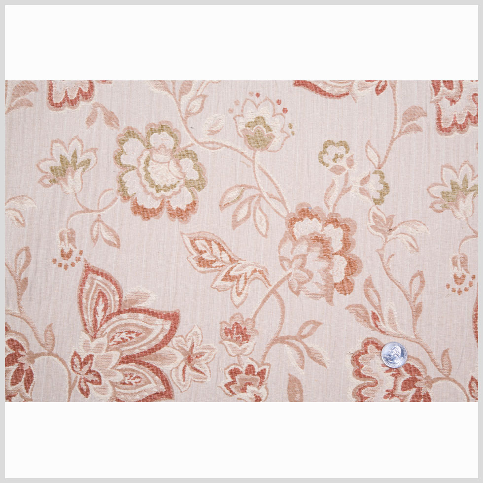 This is a khaki and tan floral chenille. The ground has a linear bubble effect giving the fabric a very textured feel.