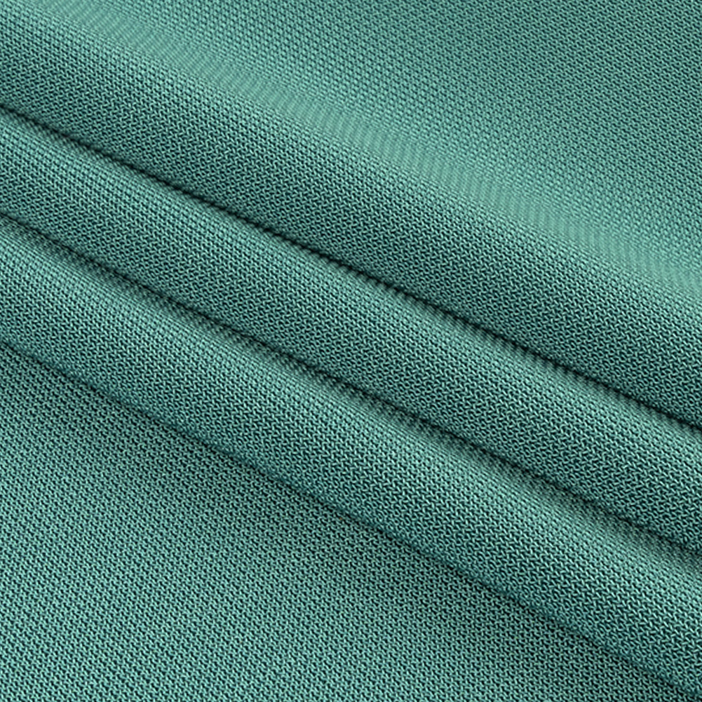 Spend a day by the lake, throwing frisbees and eating a delicious packed picnic, all while wearing Mood's elegant Lake Blue Rayon Pique Knit. Composed of breathable, stain-resistant rayon fibers, the pique knit provides a subtle texture along a muted teal face. Boasting a thickness similar to double cloth, the fluid drape is paired wonderfully with a 37.5% one-way stretch along the weft. Ideal for activewear, we suggest creating polo shirts and tennis skirts, performance bike shorts, or sporty dresses. Totally opaque, a lining is not recommended for the majority of applications.