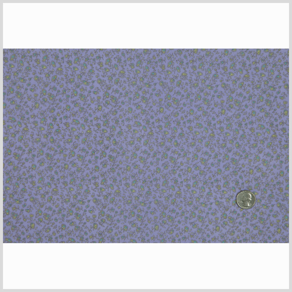 We adore this dainty poly jersey with its soft lavender color and petite flowers of yellow and green.
