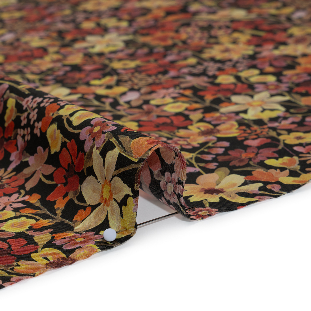 You’ll feel truly connected with the earth when you wear this Orange Dreams of Summer Tana Lawn® by Liberty Fabrics. With a smooth, silk-like hand and a fluid, billowing drape, it’s a luxurious choice for breezy, summer-ready silhouettes that float with every step.Suggested Projects: Blouses, Skirts, Dresses, QuiltsContent: 100% CottonStretch: NoneOpacity: Slightly TranslucentOriginally painted in oils with an Impressionistic touch, daisies, primroses, cornflowers, daffodils, and forget-me-nots layer and bloom in vivid hues of brown, orange, red, and yellow—each brushstroke inviting you to dream of summer. Indulge in the silk-like softness of this mesmerizing Tana Lawn® cotton, the result of a century-long evolution in fabric perfection. Crafted with precision at the Liberty Printing Mill, it showcases unparalleled print clarity and color saturation, designed to captivate from the first glance. Breathable, with a fluid, billowing drape, it’s perfect for crafting button-up camp shirts, fluttering blouses, empire-waist dresses, and ethereal wide-leg pants—or let its vibrant hues elevate quiltwork with a charm that enchants at every angle. Slightly translucent, we suggest adding a lining where opacity is desired.
