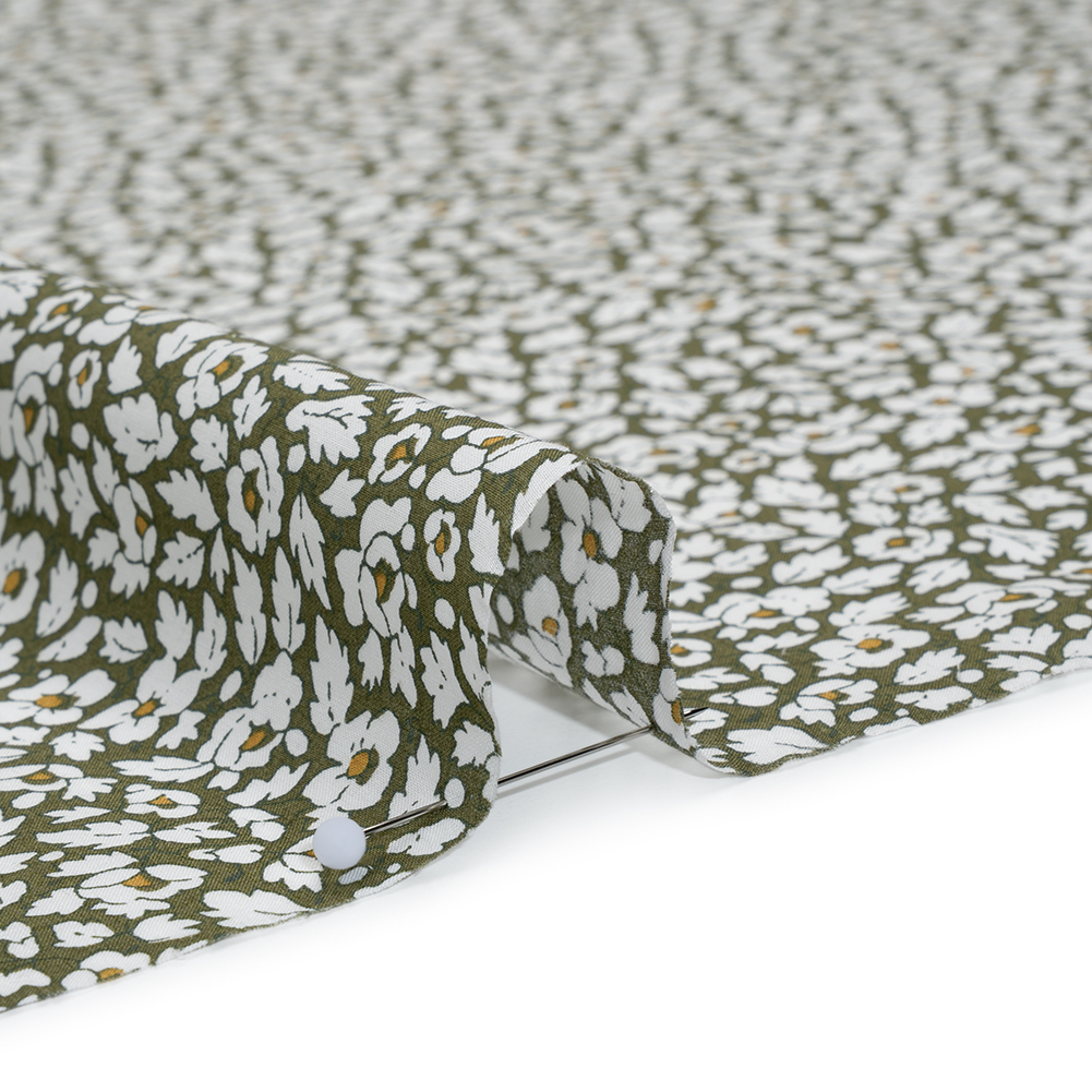 Liberty Fabrics Tana Lawn® - Feather Meadow Green - Olive Green and White Flowers and Leaves