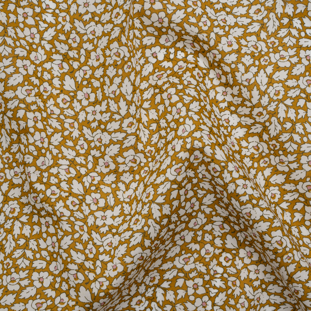 Liberty Fabrics Tana Lawn® - Feather Meadow Yellow - Yellow Ochre and White Flowers and Leaves