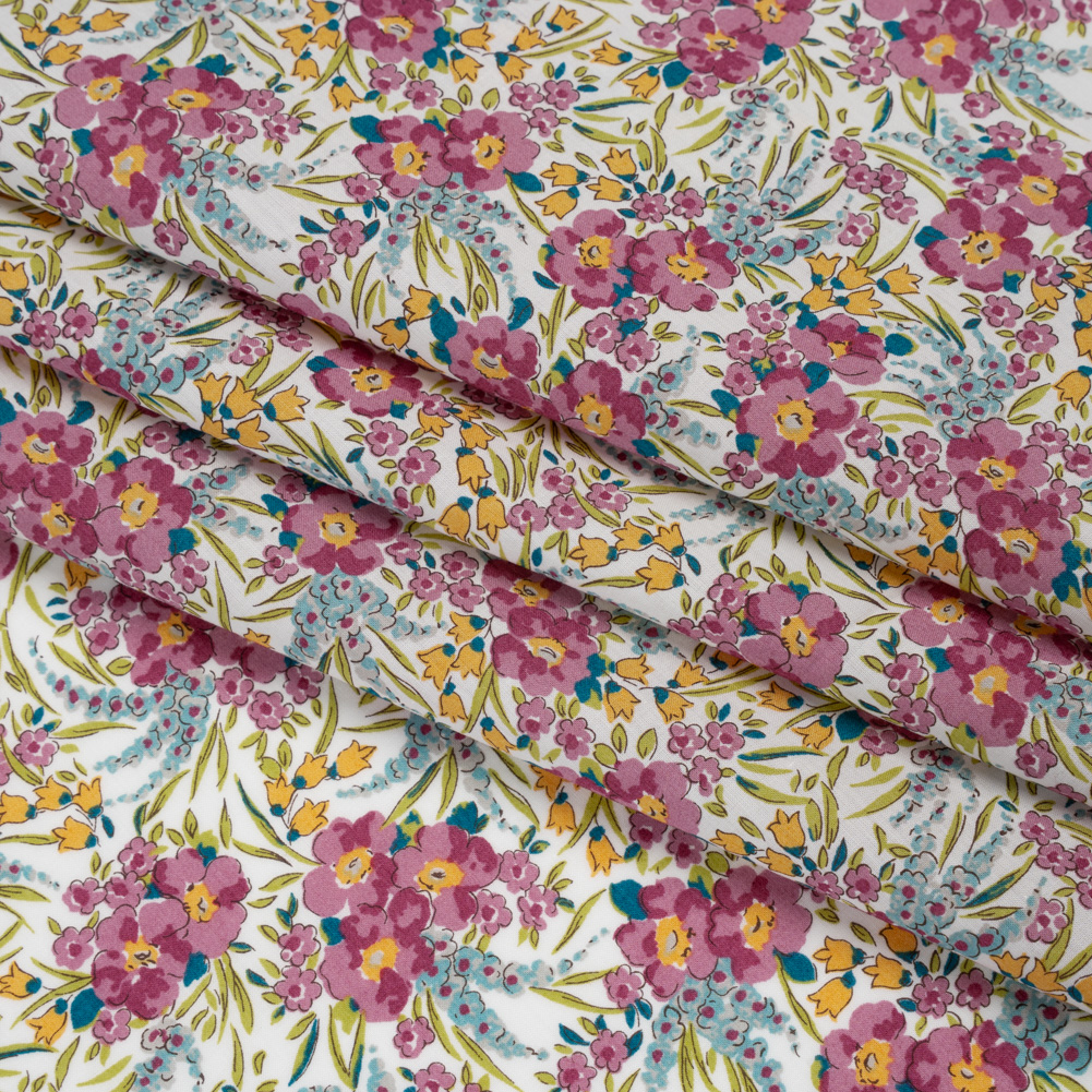 Liberty Fabrics Tana Lawn® - Swirling Petals Purple - Berry Pink, Blue and Yellow Floral