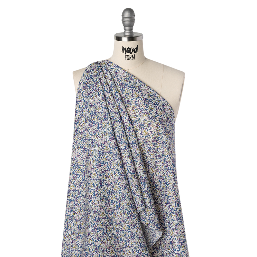This Purple Wiltshire Bud Tana Lawn® by Liberty Fabrics inspires berry picking and baking delicious blueberry pies on warm summer days. With a smooth, silk-like hand and a fluid, billowing drape, it’s a luxurious choice for breezy, summer-ready silhouettes that float with every step.Suggested Projects: Blouses, Skirts, Dresses, QuiltsContent: 100% CottonStretch: NoneOpacity: Slightly TranslucentTiny leaves and berries flourish in cheerful shades of royal purple, blue, orchid pink, and yellow ochre—each one poised to burst with charm and energy into your next design. Indulge in the silk-like softness of this mesmerizing Tana Lawn® cotton, the result of a century-long evolution in fabric perfection. Crafted with precision at the Liberty Printing Mill, it showcases unparalleled print clarity and color saturation, designed to captivate from the first glance. Breathable, with a fluid, billowing drape, it’s perfect for crafting button-up camp shirts, fluttering blouses, empire-waist dresses, and ethereal wide-leg pants—or let its vibrant hues elevate quiltwork with a charm that enchants at every angle. Slightly translucent, we suggest adding a lining where opacity is desired.