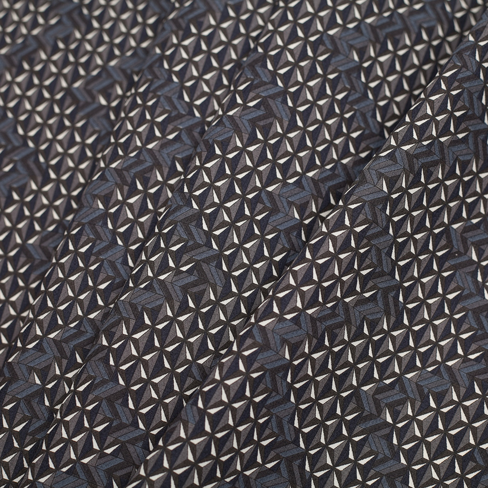 From the world famous Liberty of London, Mood presents ‘Takako’, a print composed of coordinating geometric shapes broken up with vertical zig-zagging stripes in an alternate colorway.