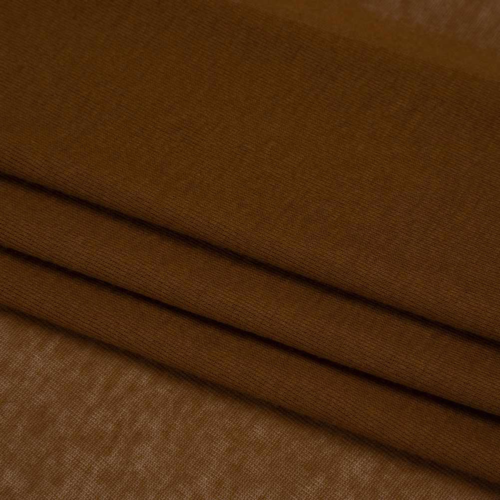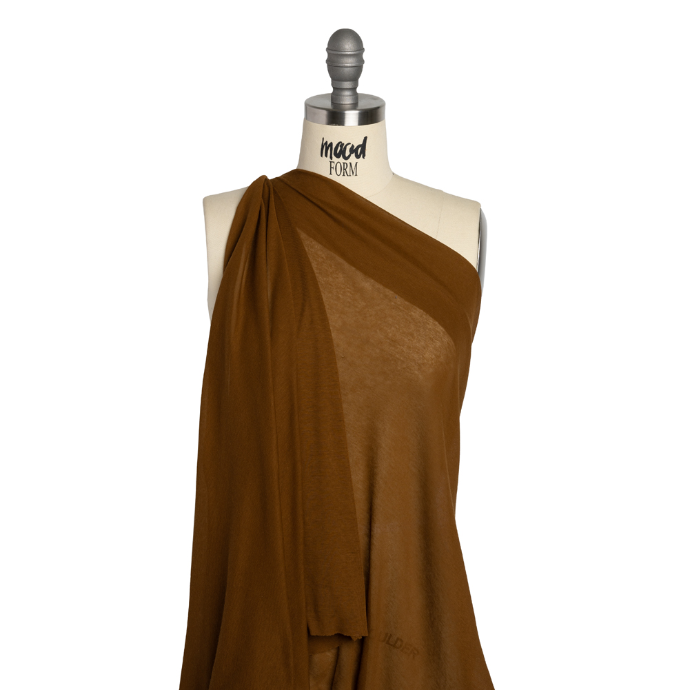 Drift away on the earth tones of this Sandalwood Brown Lightweight Cotton Interlock Knit, featuring a soft hand, fluid drape, and generous stretch through the weft.Suggested Projects: Shirts, Lightweight Pajamas, Dresses, PantsContent: CottonStretch: 100% WeftwiseOpacity: TranslucentIn a rich sandalwood brown hue, this lightweight knit offers a feel that's somewhere between a jersey and a fine rib knit. Soft in hand with a fluid drape and a weftwise stretch of more than 100%, create cozy pajamas, sheer tops with draped details, light cardigans, and so much more. Translucent, layering is recommended where opacity is desired.