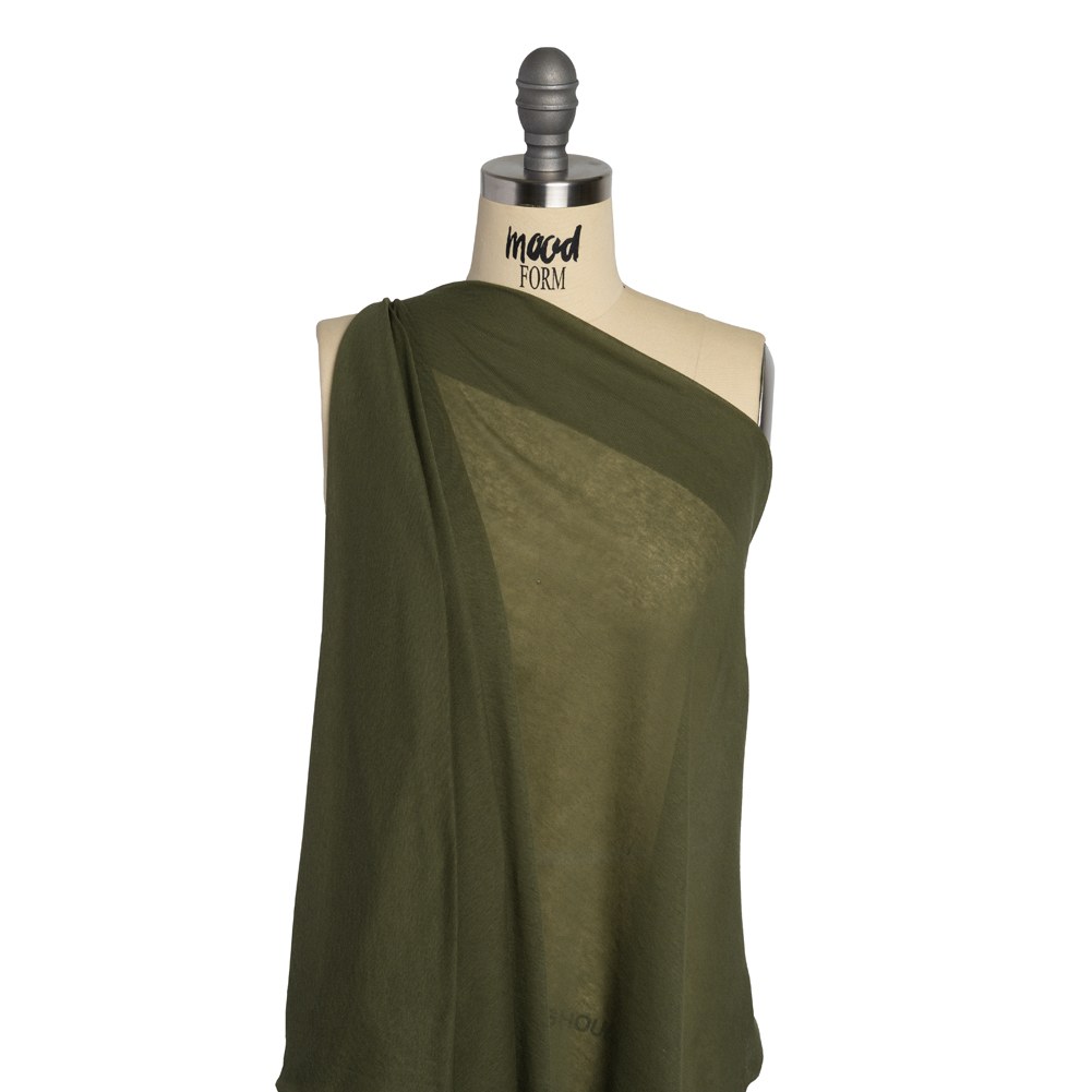 Soften your summer style with this Soft Green Lightweight Cotton Interlock Knit, featuring a soft hand, extremely generous stretch, and airy, flexible drape.Suggested Projects: Shirts, Dresses, Shorts, Lightweight PajamasContent: CottonStretch: 100% WeftwiseOpacity: TranslucentRelax enveloped in the luxurious feel of this soft green cotton knit. Exceptionally lightweight, this knit features a super-soft hand and an airy, flexible drape. With a 100% stretch through the weft, create billowing dresses with gathered skirts, comfy summer pajama sets, and wide-legged jumpsuits. Translucent, self-lining or layering is recommended for opacity where desired.