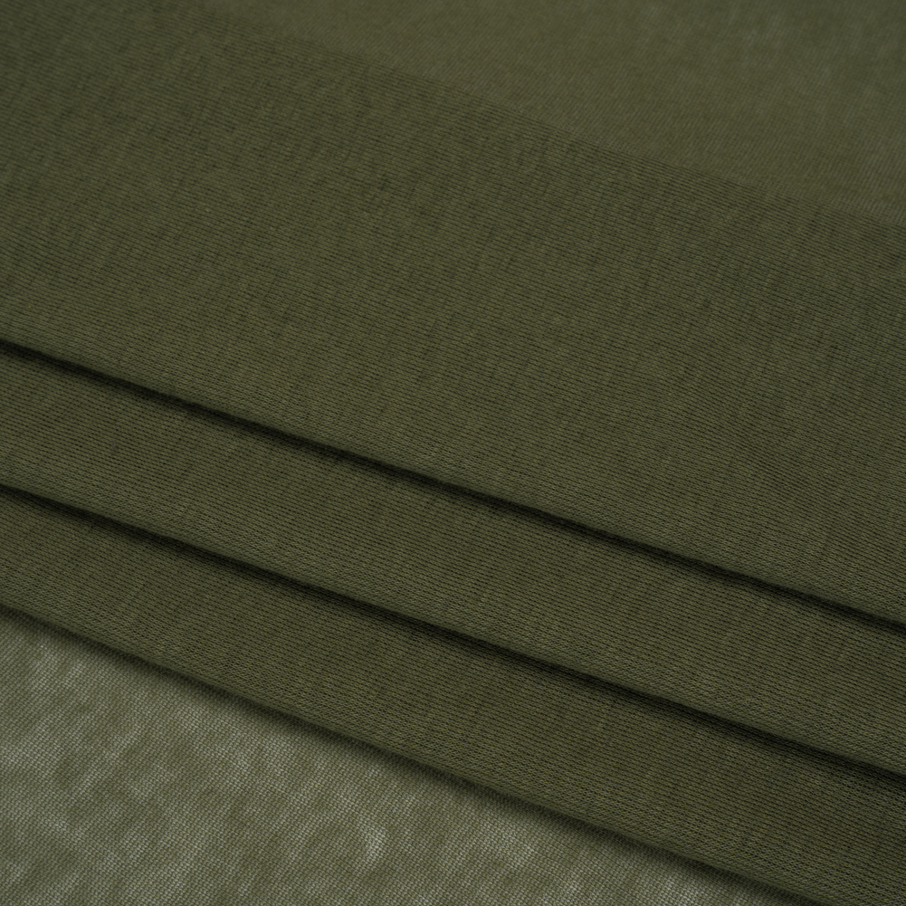 Soften your summer style with this Soft Green Lightweight Cotton Interlock Knit, featuring a soft hand, extremely generous stretch, and airy, flexible drape.
