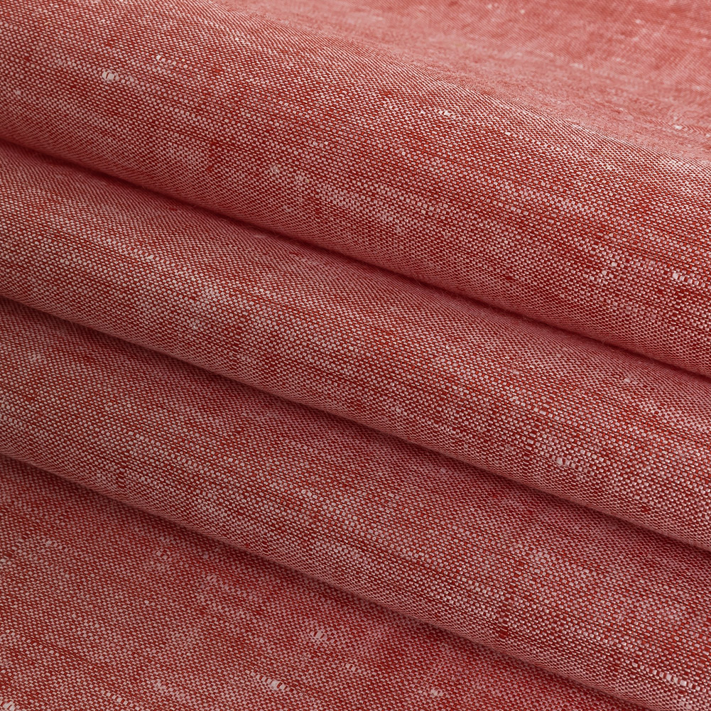 There's nothing better than a tomato fresh from the garden, but our Minerva Heathered Tomato Puree Lightweight Linen Chambray is pretty great, too! The addition of linen's naturally slubbed texture to a fabric composed of a white warp and dyed weft lends this material a heathered coloration overall. Soft in hand with a malleable drape and no stretch, make summer-ready pieces like swimwear cover-ups and airy trapeze dresses that take advantage of linen's amazing breathability, or craft crisp shirts and blouses to be worn year-round! Slightly translucent, a lining may be desired for some projects but isn't necessary.