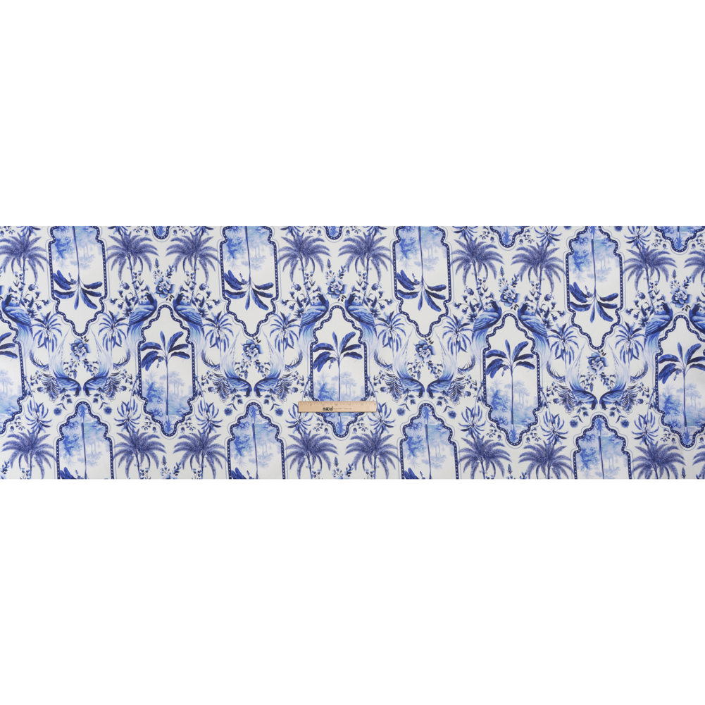 Lightweight Linen Woven - Blue and White Palms in Paradise
