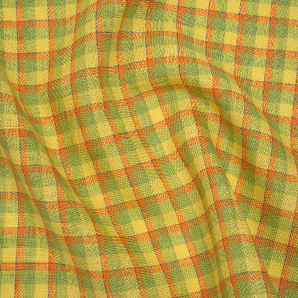 Squeeze some summer sunshine into your designs with this Bright Yellow, Orange and Lime Green Plaid Lightweight Linen Woven—featuring a slightly slubbed hand and fluid drape.Suggested Projects: Shirts, Skirts, Pants, DressesContent: 100% LinenStretch: NoneOpacity: TranslucentBright yellow, orange, and lime green threads weave together in an alluring plaid pattern. The face is slightly slubbed and the drape is fluid. Naturally moisture-wicking and of medium weight, this linen will make steamy summer days a breeze. Create relaxed button-downs, pleated skirts, overall dresses, and more! As it is translucent, a lining may be desired depending on the project.