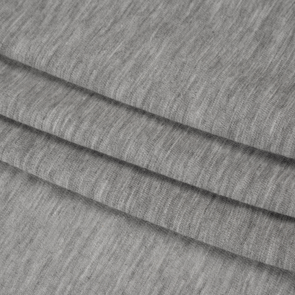 Easy inspiration blows in atop this Heathered Cloud Gray Lightweight Modal, Polyester and Cotton Jersey—featuring a sleek, smooth hand and airy drape.Suggested Projects: Tops, Shorts, Dresses, CardigansContent: 50% Modal, 30% Polyester, 20% CottonStretch: 60% WeftwiseOpacity: TranslucentEmbrace everyday ease with this heathered cloud gray jersey, where the lightweight, smooth hand and airy drape make comfort effortless. Ideal for oversized tees, short shorts, casual bodycon dresses, and soft cardigans, it brings relaxation to every corner of your wardrobe. Translucent, we suggest self lining or layering for full coverage.