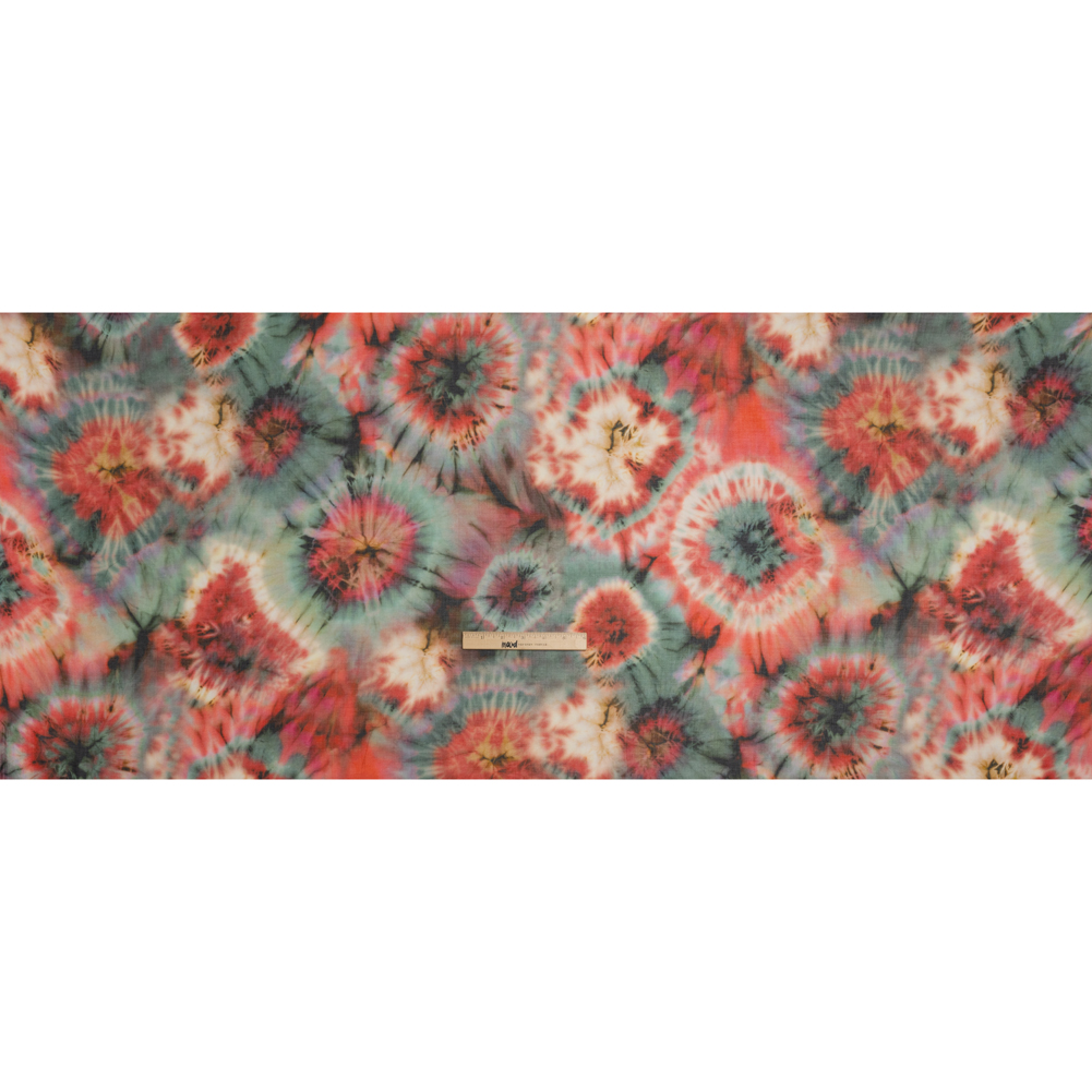 Lightweight Rayon Twill - Red and Forest Green Tie Dye - Made in Italy