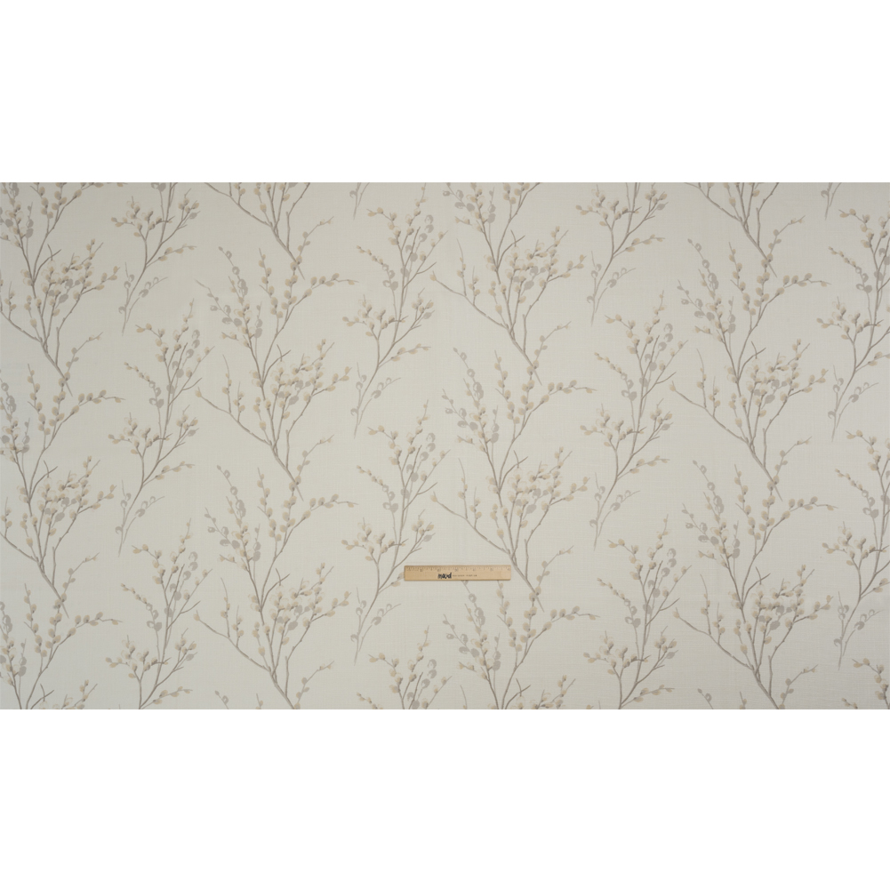 Throw open your windows to let the fresh air dance with this British Imported Dove Grey Prairie Willow Linen and Rayon Drapery Woven. Prairie willows stretch their gray branches and cream buds across a white sky. This blend of linen and rayon yields a sleek yet pebbly fabric, boasting a lustrous face and falling with a fluid drape that begs to be displayed in long curtains and elegant valances. Please note that this fabric is slightly translucent; a lining may be desired.