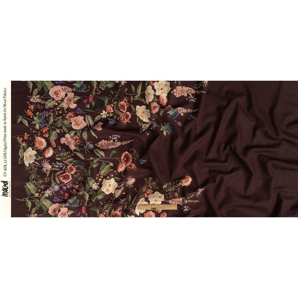 Reminiscent of the elegant still lifes of Rachel Ruysch, our Mood Exclusive Baroque Bouquet Linen and Rayon Woven paints a memory of fresh cut flowers, laid out on a dark wood table and ready to be arranged into the perfect centerpiece. A derivative of The Wisteria Collection, this astonishingly sumptuous fabric will have you in awe of its excellence. Soft and silken in hand, the linen and rayon blend boasts a subtle luster throughout. Of a medium weight and without stretch, utilize its voluminous, malleable drape to fashion anything from casual shirts and jackets to more sophisticated pinafore skirts and cigarette pants. Swing by our Mood Sewciety Blog to take a glance at our free Cress Skirt, Perilla Jumpsuit, Primrose Pants, Ash Pants, and Piper Shorts sewing patterns for inspiration.MoodEarth Verified: This fabric is composed of viscose fibers derived from suppliers ranked as Green Shirt by Canopy, earned with attention to sustainable wood and pulp sourcing, backed by efforts to conserve critical forests. For more information on Mood's sustainability initiatives, check out MoodEarth here.Please Note: Due to the nature of linen, the print may feature white speckles throughout.