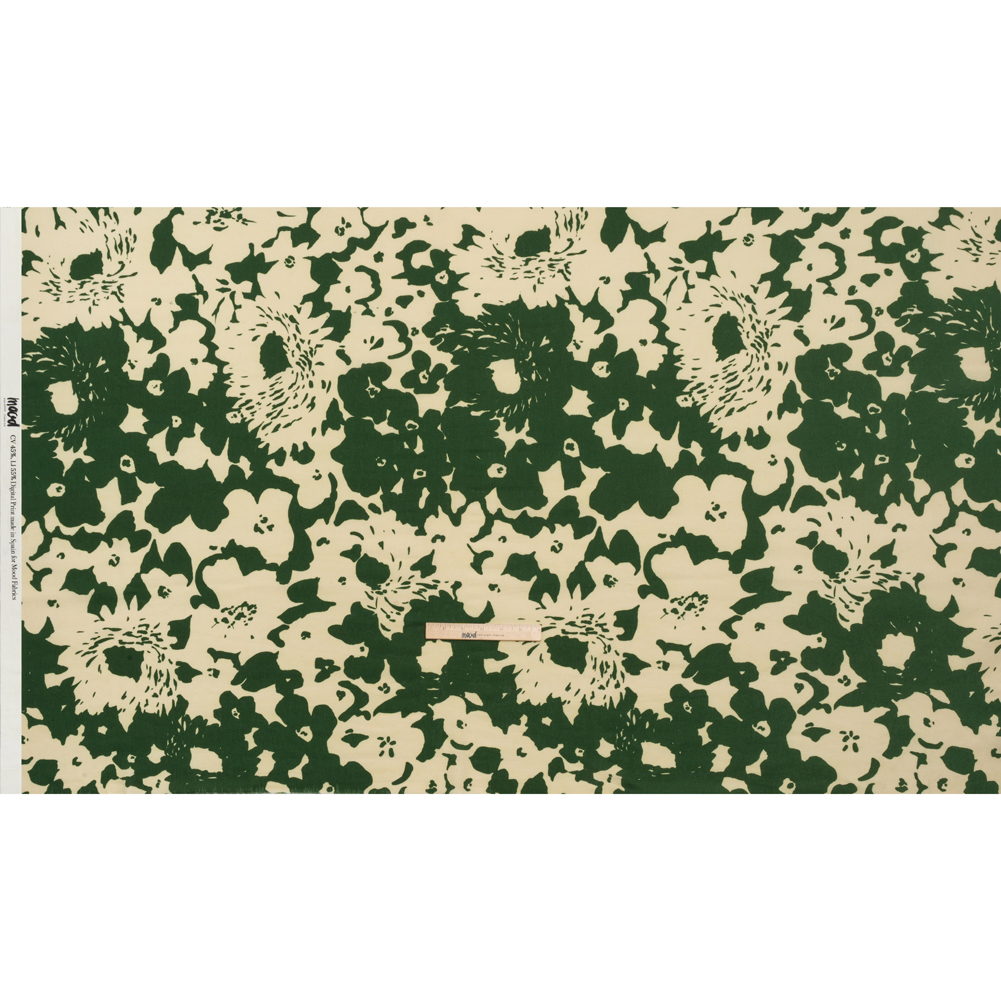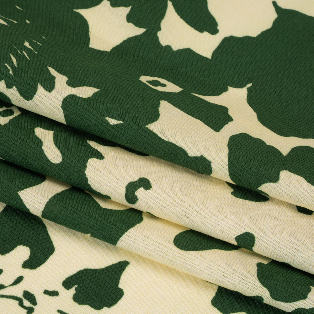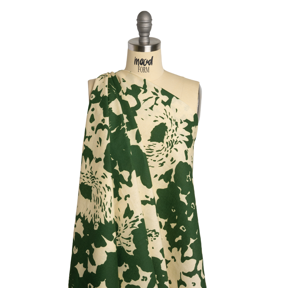 Linen and Rayon Woven - Hunter Green and Cream Big Floral - Rorschach Rosettes Print - Mood Exclusive Acadia Collection