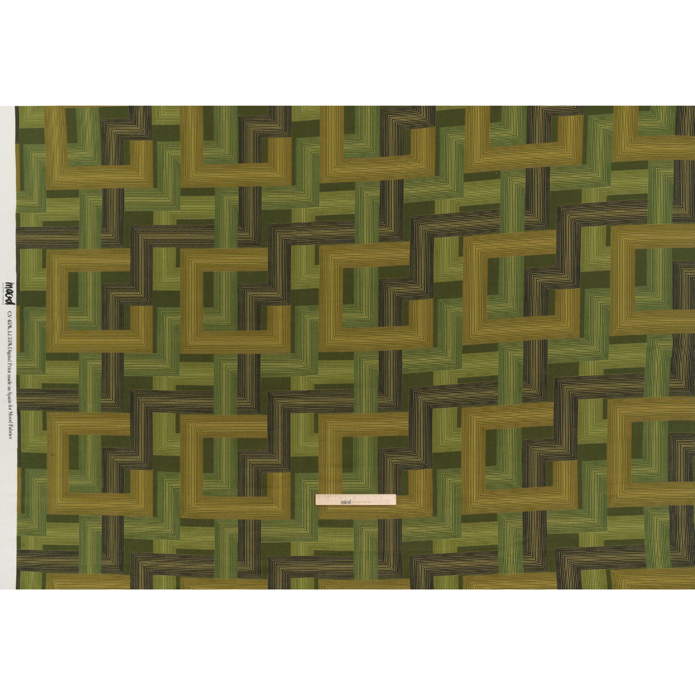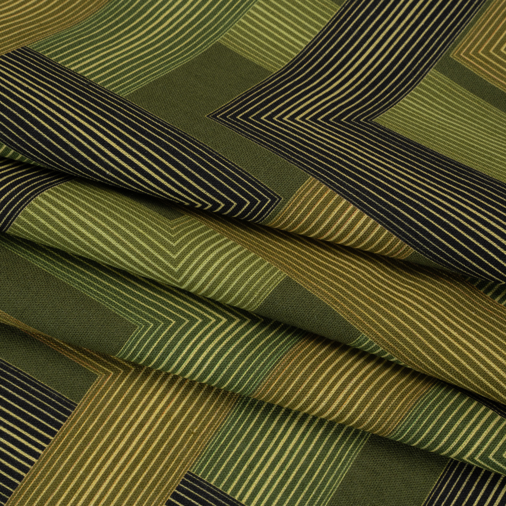 Linen and Rayon Woven - Olive and Hunter Green Geometric Lines - Hedge Maze Print - Mood Exclusive Acadia Collection