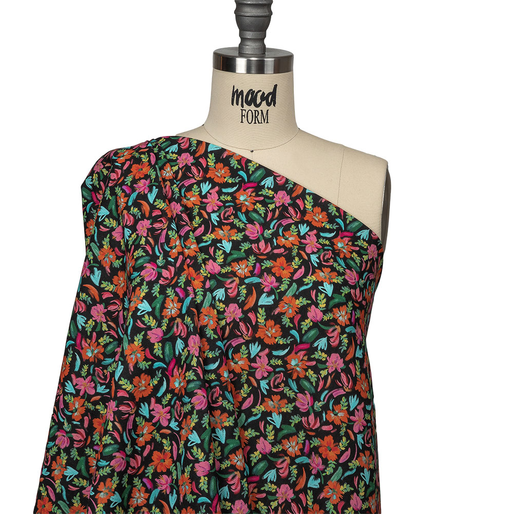 Linen and Rayon Woven - Pink, Blue and Black Floral - Confetti Fete Print - Mood Exclusive Citrus Collection