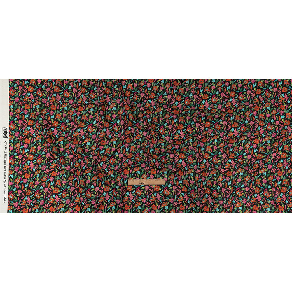 Refined, yet ready to rock, you'll find the perfect party in this Confetti Fete Linen and Rayon Woven! This fabric is suitable for both casual and semi-formal garments due to its blend of natural and semi-synthetic fibers.Suggested Projects: Dresses, Shirts, Shorts, JacketsContent: 55% European Linen, 45% ViscoseStretch: NoneOpacity: Nearly OpaquePainterly flowers in orange, pink, aqua, and green are scattered over the black background like confetti in the street. Part of The Citrus Collection, linen and rayon fibers collectively produce a soft, breathable material with a malleable drape. Craft billowing sundresses, breezy dirndl skirts, or crisp shirts, shorts, and jackets. Mostly opaque, a lining can be added for structure.