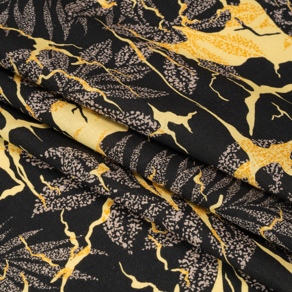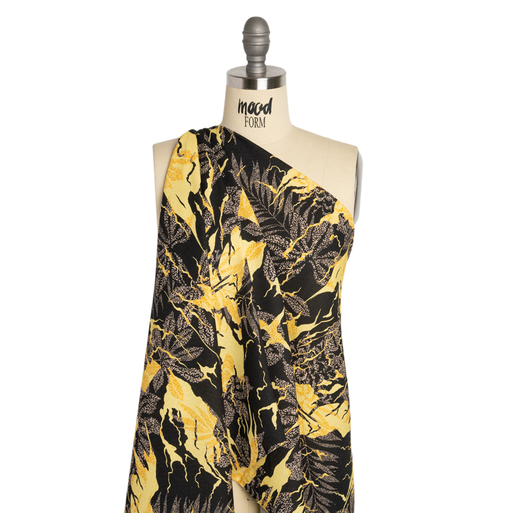 Linen and Rayon Woven Print - Black and Yellow Floral - Mood Exclusive Fossilized Memories